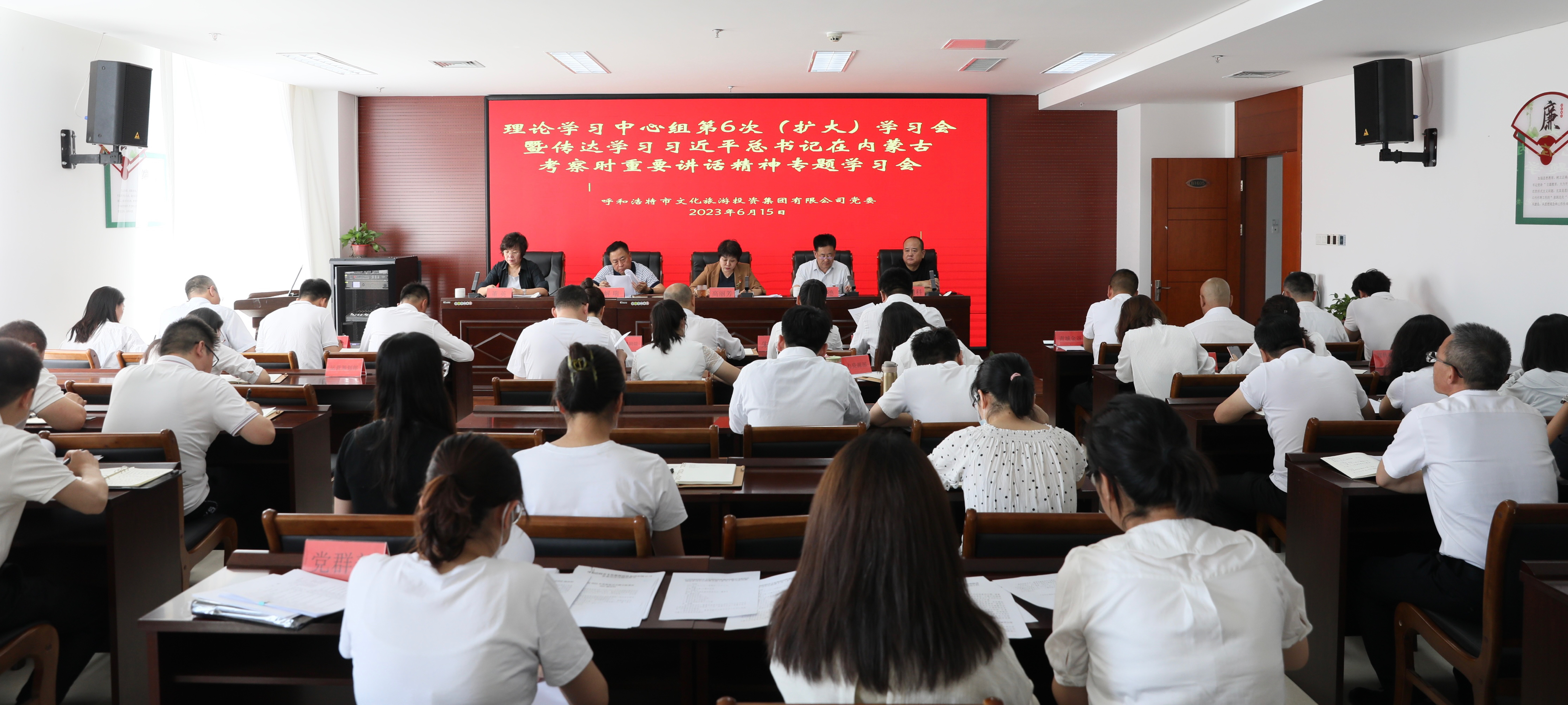 6月15日上午,市文旅投集团党委召开2023年理论学习中心组第6次(扩大)学习会,专题学习习近平总书记在内蒙古考察时的重要讲话精神,集团党委书记、董事长高丽芳出席会议并讲话,集团党委副书记、董事冯德主持会议。